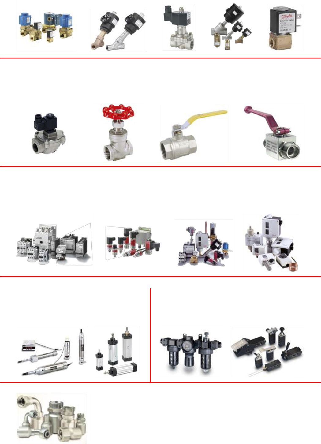 Válvulas solenoides para uso general (agua, aceite, aire) y aplicaciones como: Manejo de gas, ácidos, vapor y medios similares; así como válvulas neumáticas (tipo pistón), angulares para el manejo de fluidos viscosos y altas temperaturas.